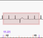 Once the cursor changes, press and hold the mouse button, then drag in the desired direction to resize the Navigation Box. As you resize, the ECG in the Analysis Window will adjust accordingly, becoming larger or smaller. Figure 2 illustrates this process, showing how resizing zooms in on the ECG.