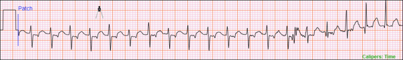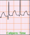 If a Time Caliper Measurement is present on the ECG and you want to measure a different region, repeat the steps for creating a new Time Caliper Measurement with a starting position outside the current Time Caliper Measurement.