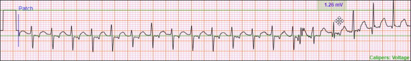 indicating the measurement location can be changed. Then press and hold the left mouse button and move the mouse up or down to set a new location. When at the desired new location, release the left mouse button. The updated Voltage Caliper Measurement will remain on the ECG. You can adjust the Voltage Caliper using the keyboard.